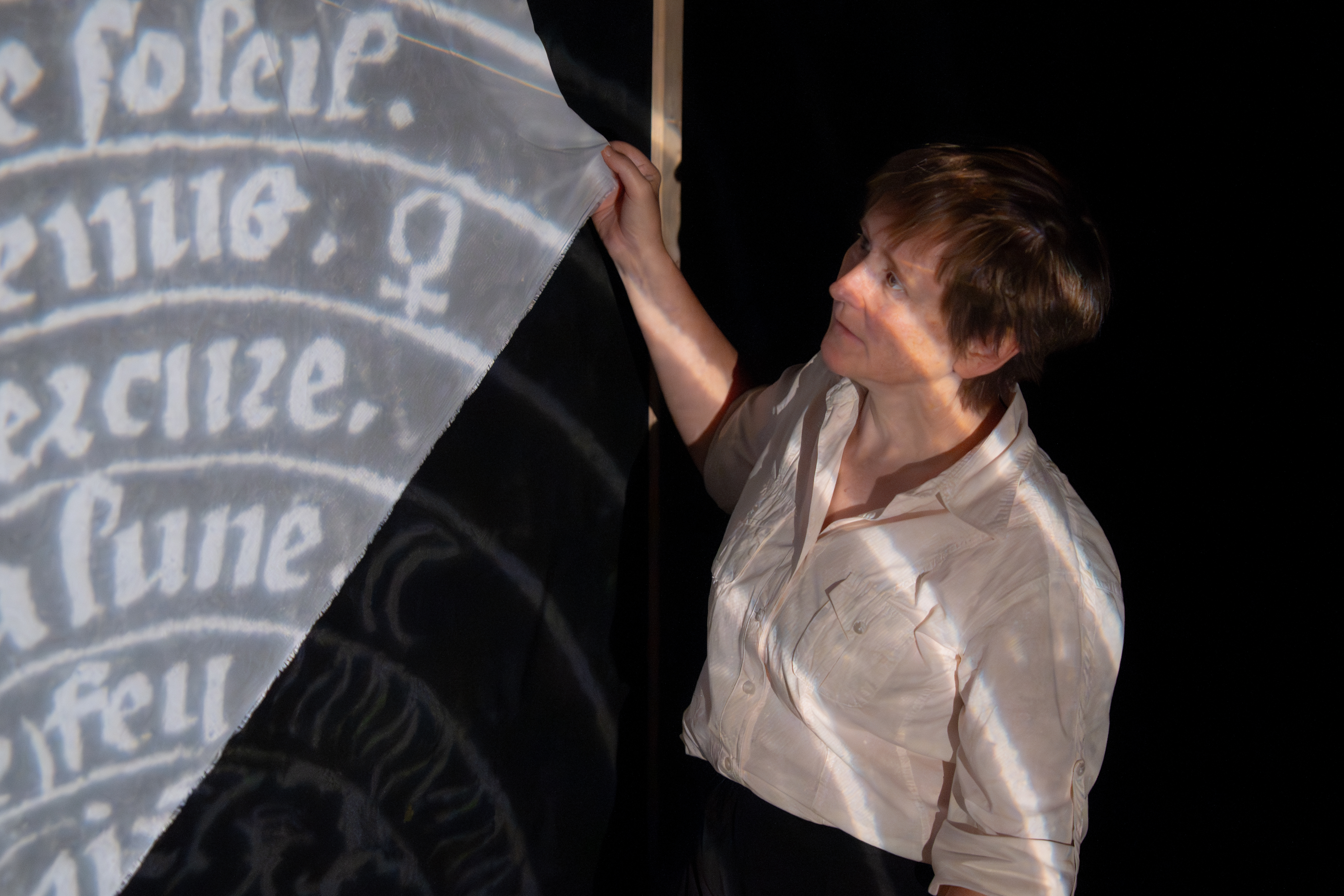 Pas de termes obscurs ni d’appareillage sophistiqué : une scène dépouillée pour laisser se déployer la narration. Les jeux de lumière évoquent plus qu’ils ne montrent: ils sont un clin d’œil à la fois au cours d’optique dispensé par Lemaître à Louvain et aux photos de l’univers que nous envoient les