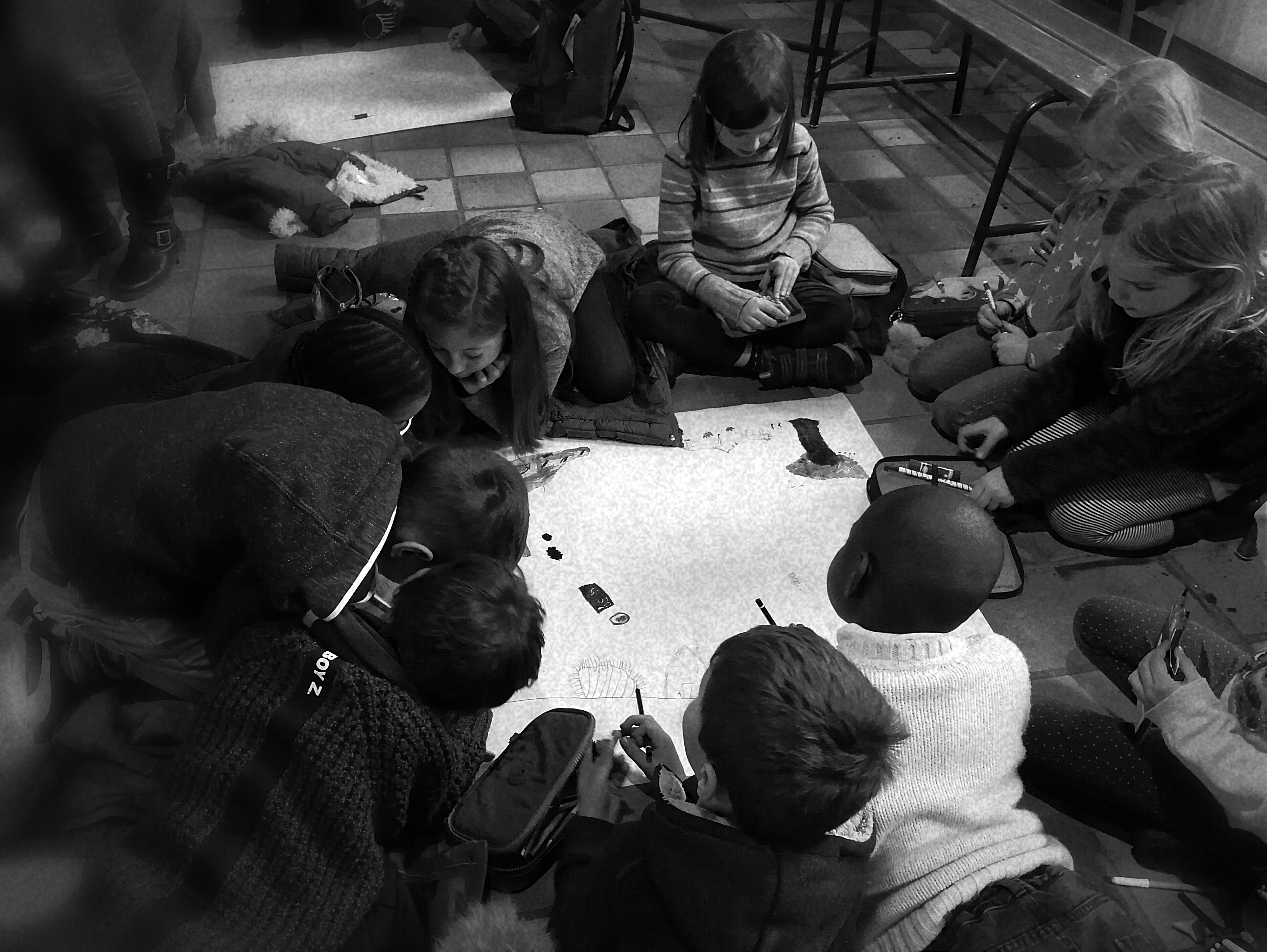 - atelier philo autour de l’humain et de sa place dans le monde. Les résultats, sous forme de dessins commentés par les enfants, sont éclairants sur la coupure (mal) vécue entre les petits Bruxellois et l’environnement. Voir à ce sujet notre billet thématique ici : « Galerie de Mondes possibles« .
